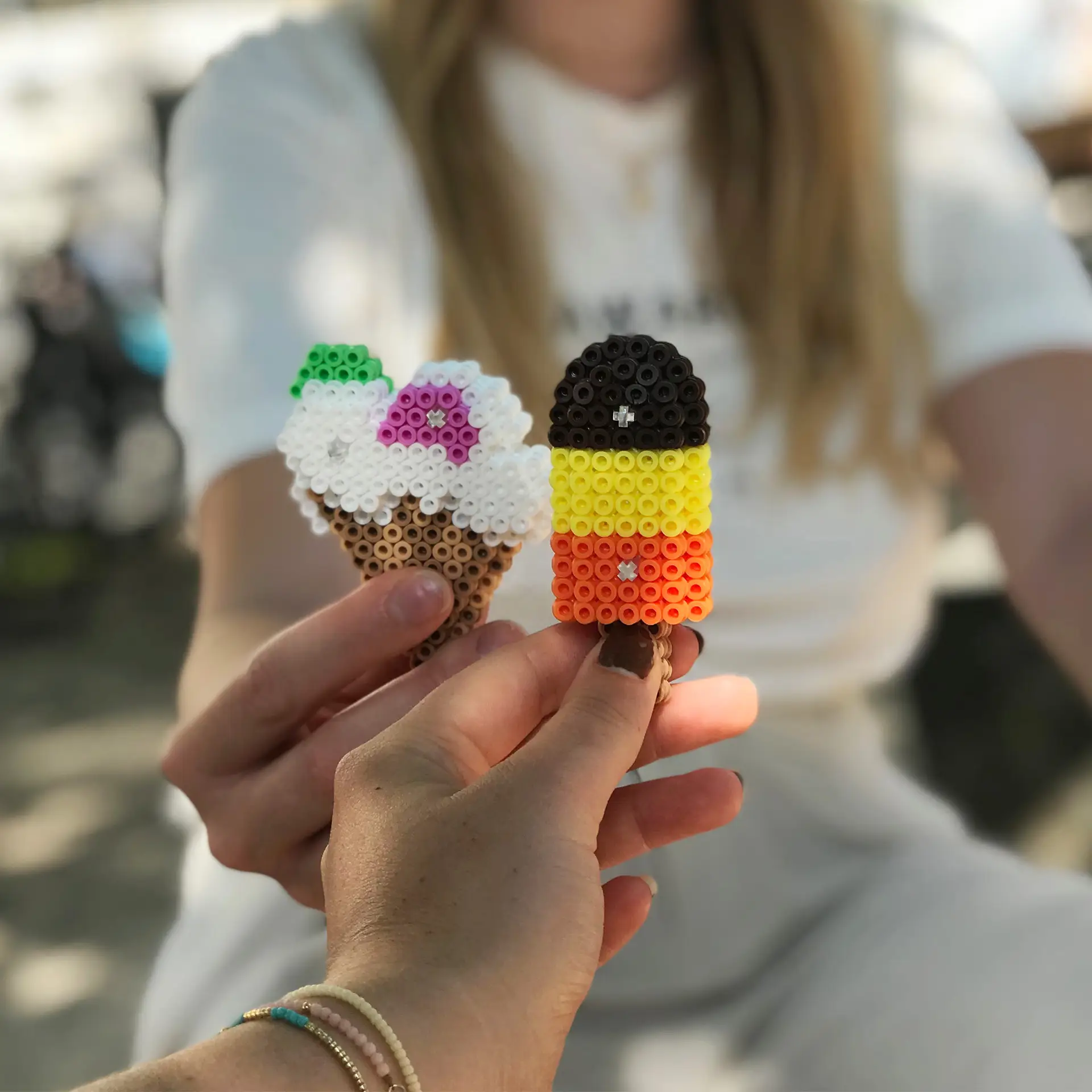 These midi beads are compatible with all heat‑resistant Hama pegboards. Once a design is complete, cover it with Hama ironing paper and have an adult iron over the top to fuse the beads together. When cooled, the finished piece can be lifted from the pegboard to reveal a long‑lasting decoration.