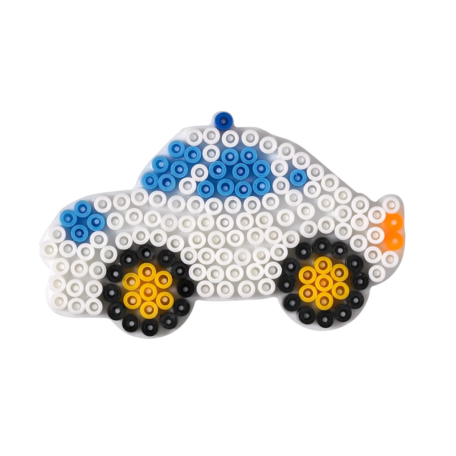 The set includes 10,000 midi beads, ironing paper, inspiration sheets and five reusable pegboards: butterfly, car, flower, mouse and seahorse. Simply place the beads onto a pegboard to build a design, cover it with the ironing sheet and have an adult iron over the top. Once fused and cooled, the finished piece can be lifted from the pegboard to reveal a colourful decoration.