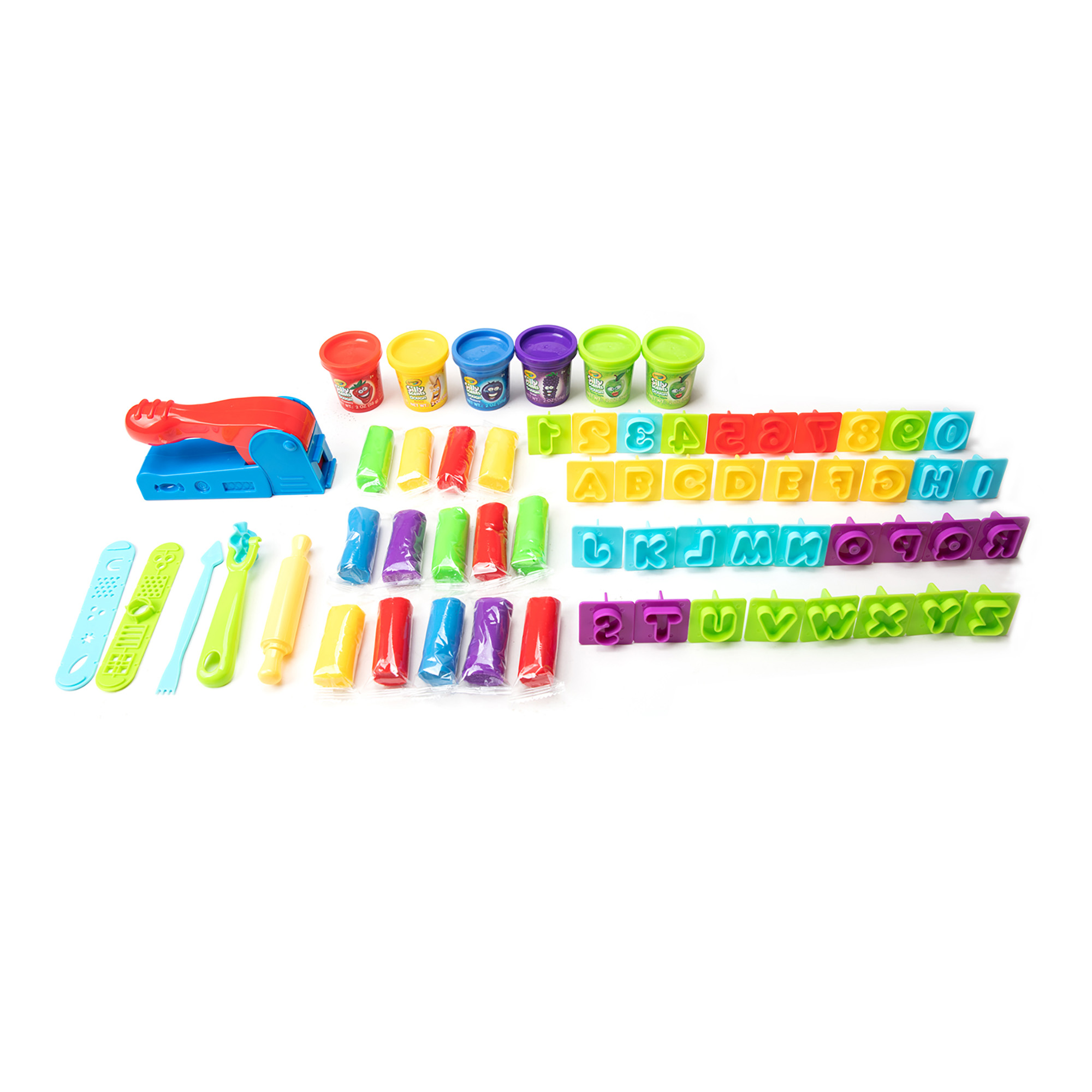 A wide range of tools such asalphabet and number cutters, an extruder, shaping plates, modelling tools and a dough roller, makes it easy to build, design and experiment. The dough is safe, non‑toxic and certified, offering peace of mind.