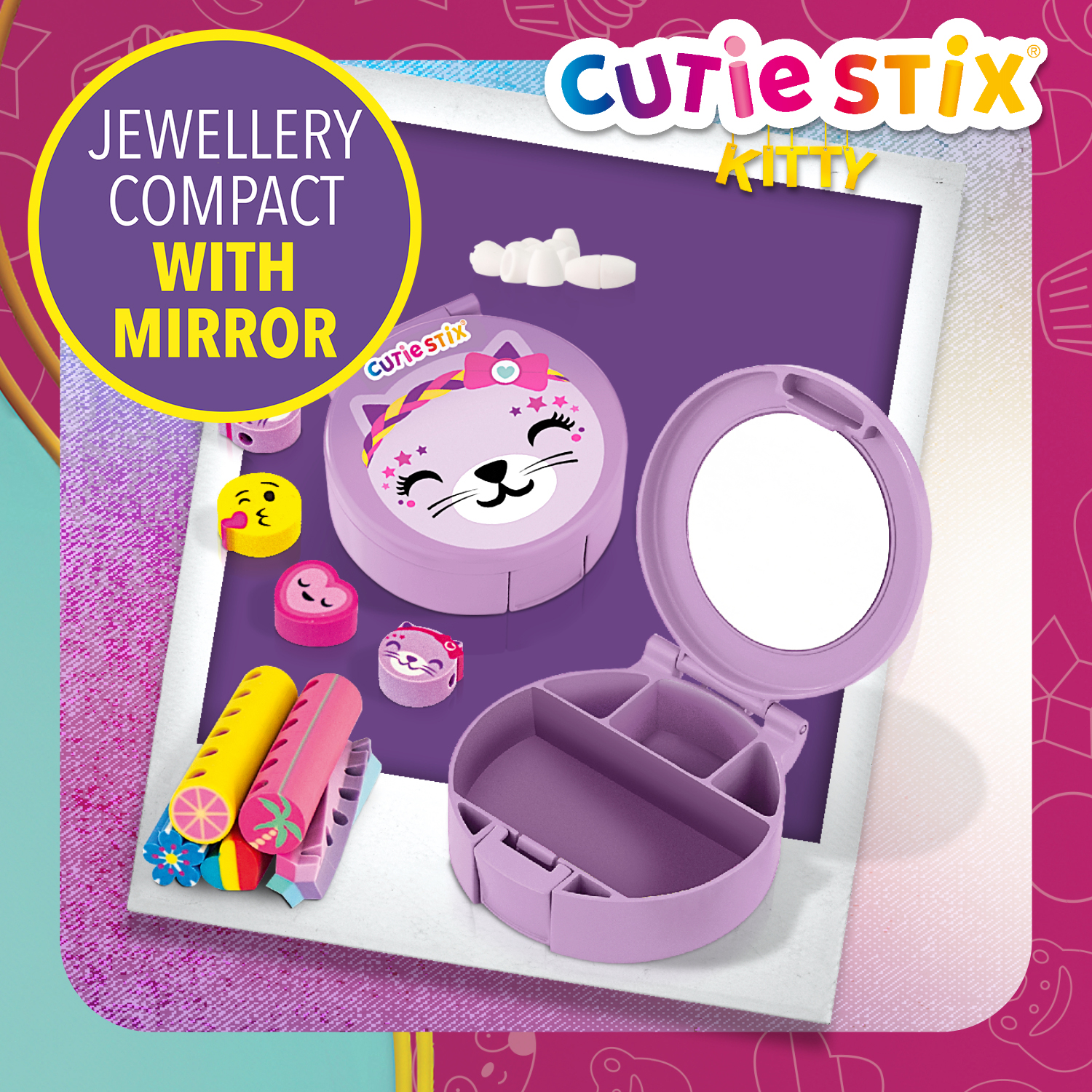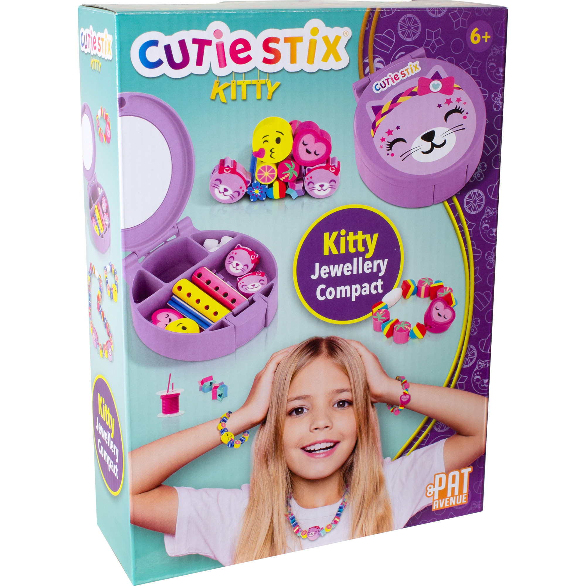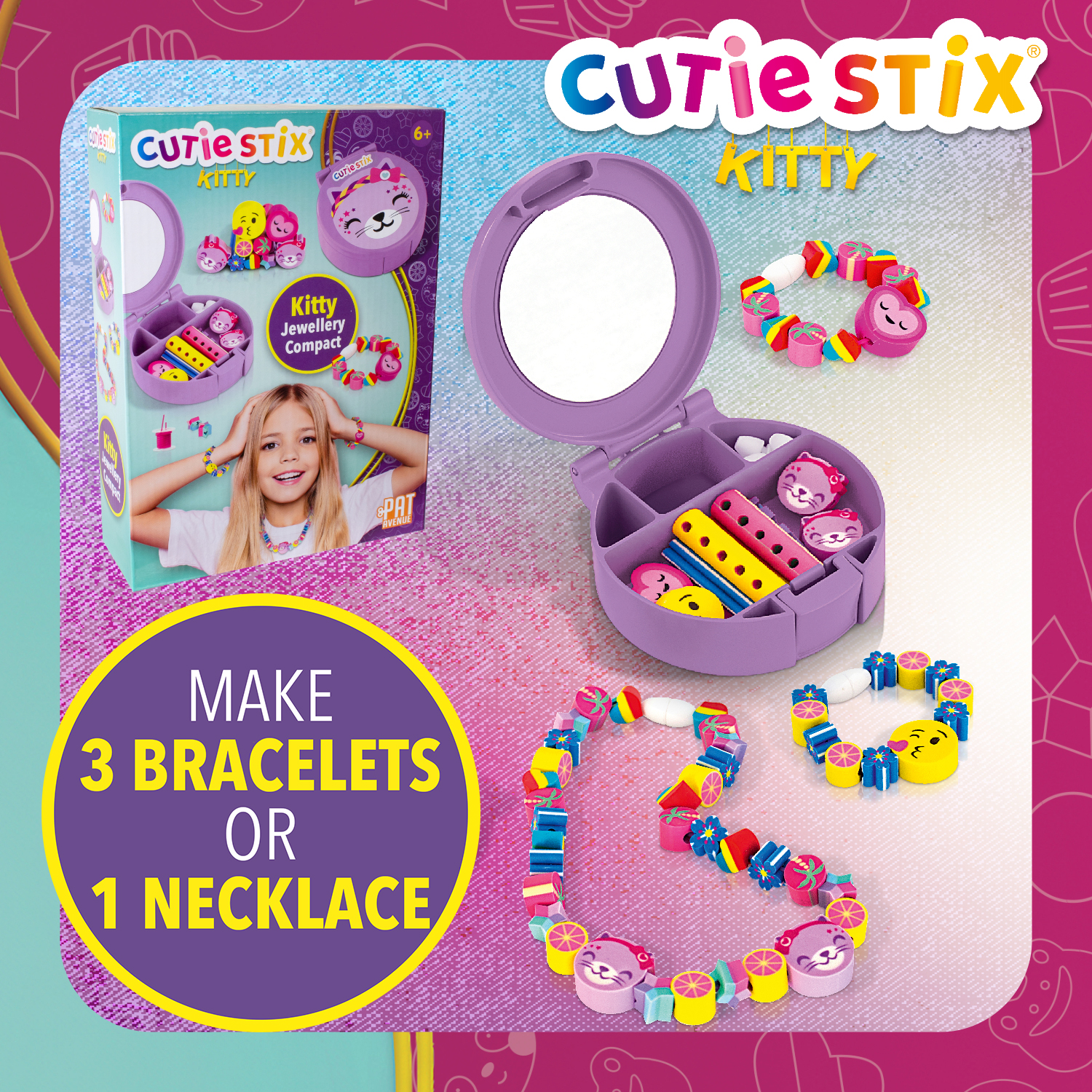 Includes: Kitty Compact with Mirror, Elastic Thread Spool, 4 Clasps, 4 Large Beads and 5 Pre‑Cut Cutie Stix.