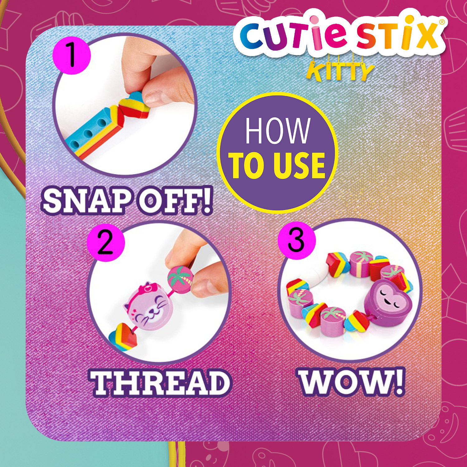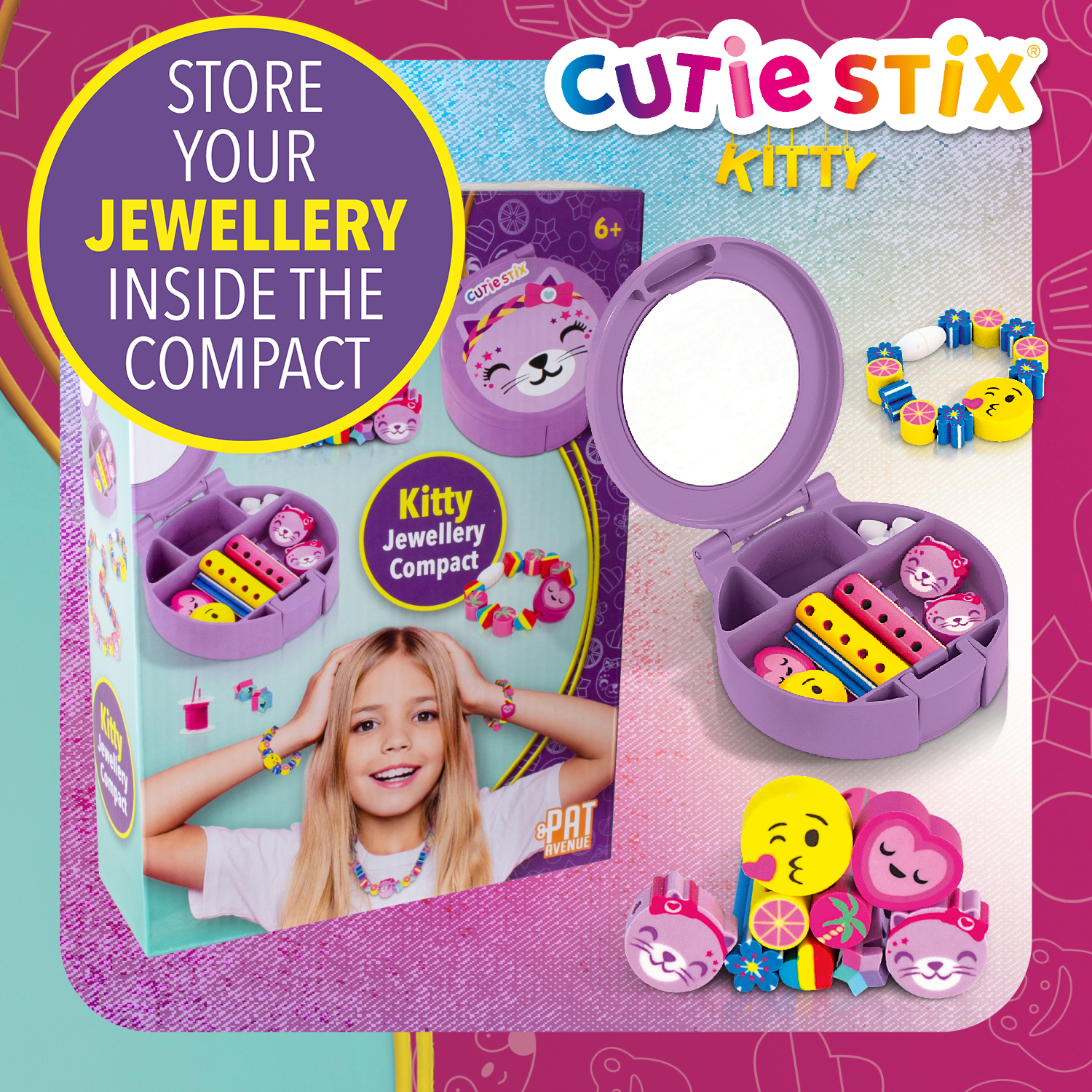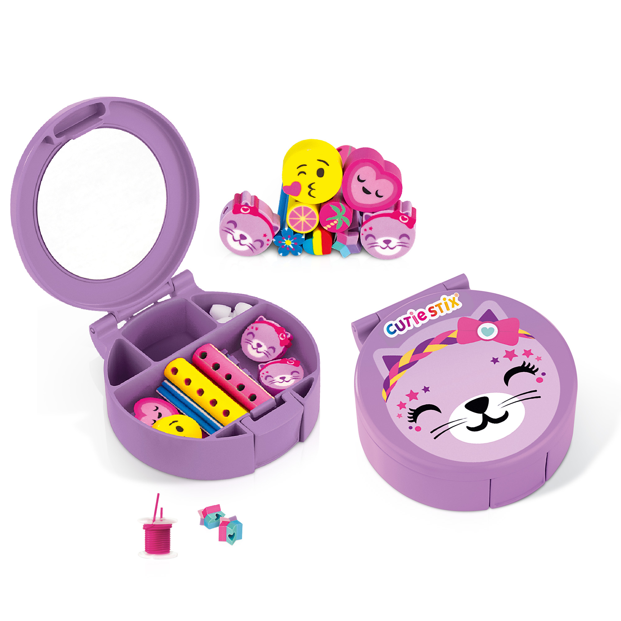 Includes: Kitty Compact with Mirror, Elastic Thread Spool, 4 Clasps, 4 Large Beads and 5 Pre‑Cut Cutie Stix.