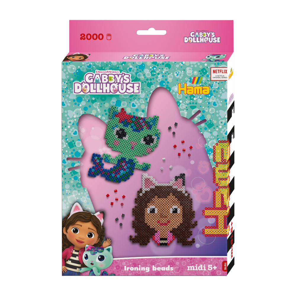 Join Gabby and her adorable kitty friends in their dollhouse adventure with this Hama Beads Gabby’s Dollhouse Set.