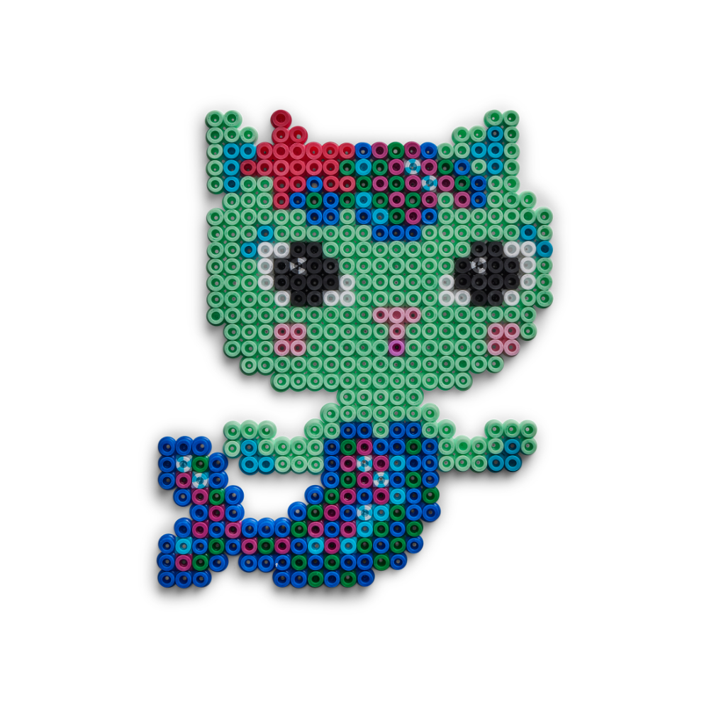 Place the transparent pegboard on top of the design template, place the beads onto the pegboards and follow the guide to create favourite characters!