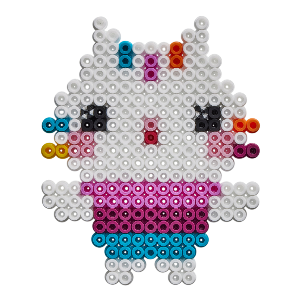 Place the two interconnecting transparent pegboards on top of the design template, place the beads onto the pegboards and follow the guide to create favourite characters!