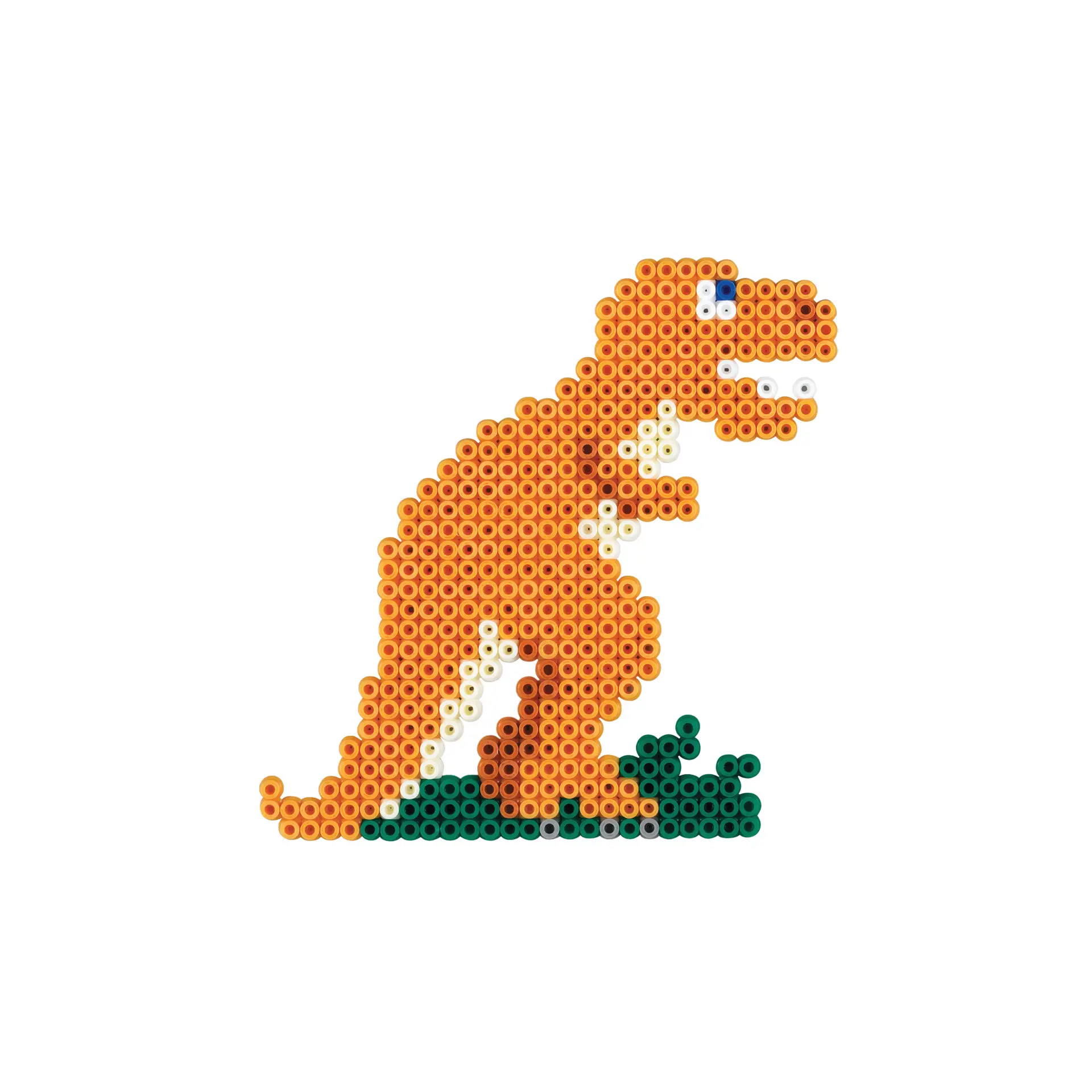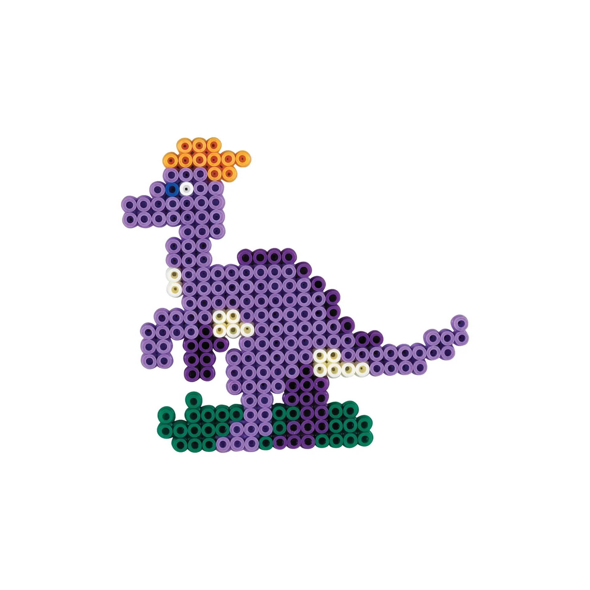 Once the bead pattern is arranged, simply place a sheet of Hama ironing paper over the top and have an adult iron the design to melt the beads together. When cooled, lift the finished piece from the pegboard and use the included bead supports to stand and display the dinosaurs, ready for decoration or imaginative play.