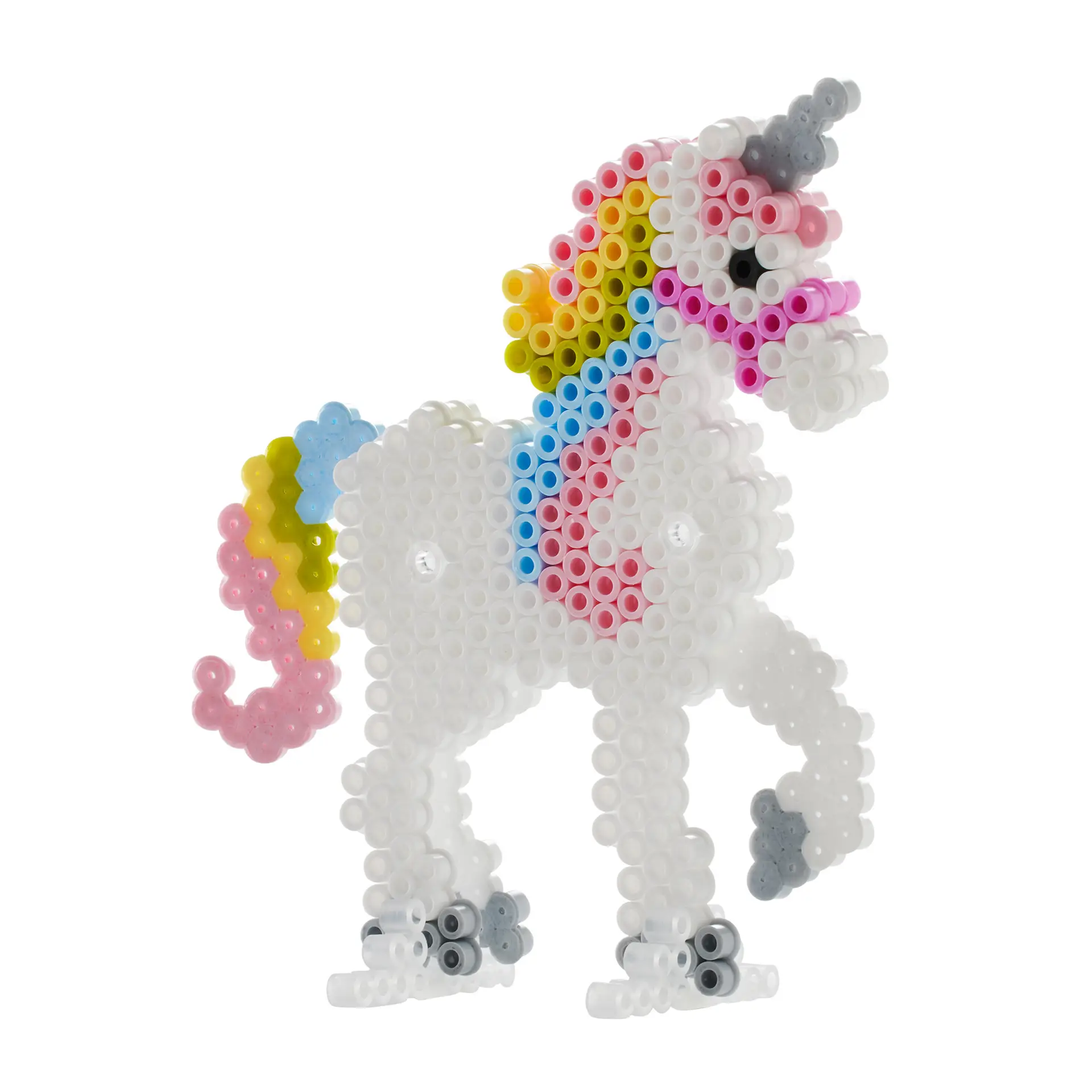 Once the beads are arranged, simply place a sheet of Hama ironing paper over the top and have an adult iron the designs to fuse the beads together. When cooled, lift the pieces from the pegboard and use the included connectors to assemble vibrant 3D unicorns. Add the bead supports to create freestanding figures that look ready to gallop into a magical adventure.