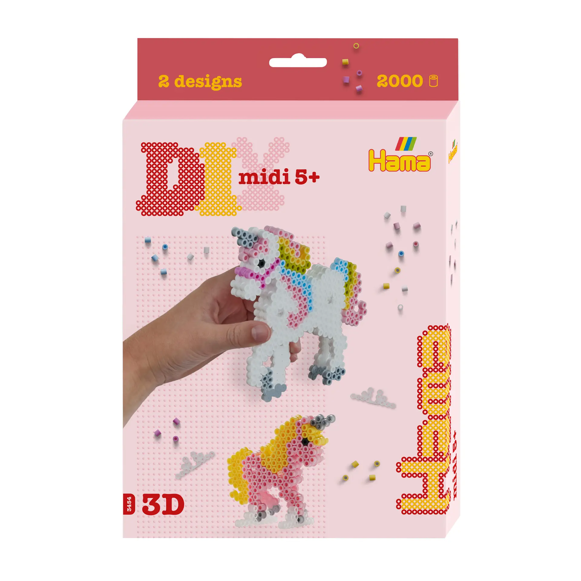Bring a magical world to life with the Hama Unicorns Hanging Box, featuring approximately 2,000 colourful beads and a reusable hexagonal pegboard for crafting enchanting unicorn designs. Follow the included template or explore imaginative ideas to build bright, detailed bead creations that transform into 3D figures.