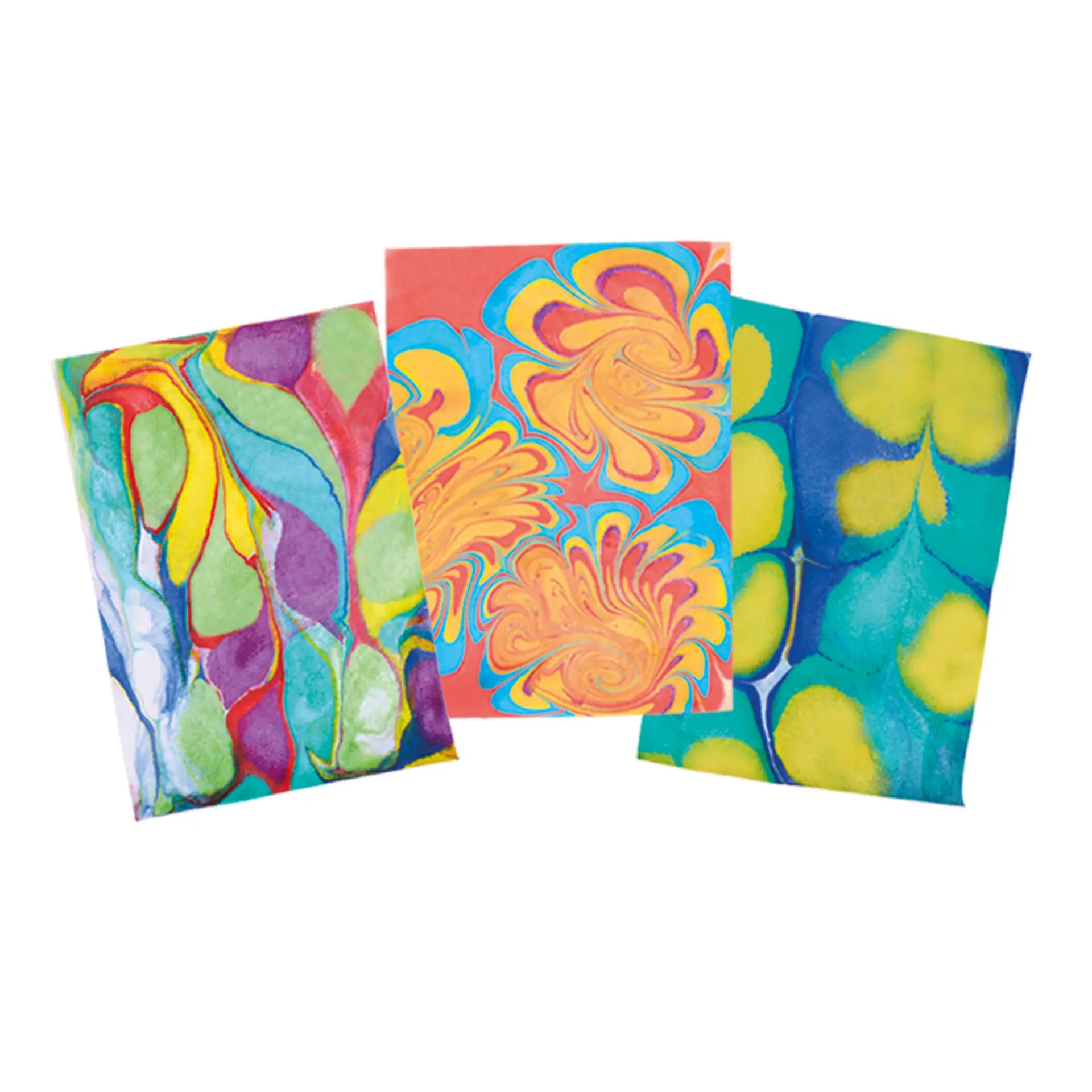 There is a little preparation involved: mix the marbling powder with hot tap water and allow it to set for 3–5 hours (or ideally overnight). Once ready, the creative fun begins; drop the paints, swirl patterns, press down the paper and reveal a stunning marbled print.