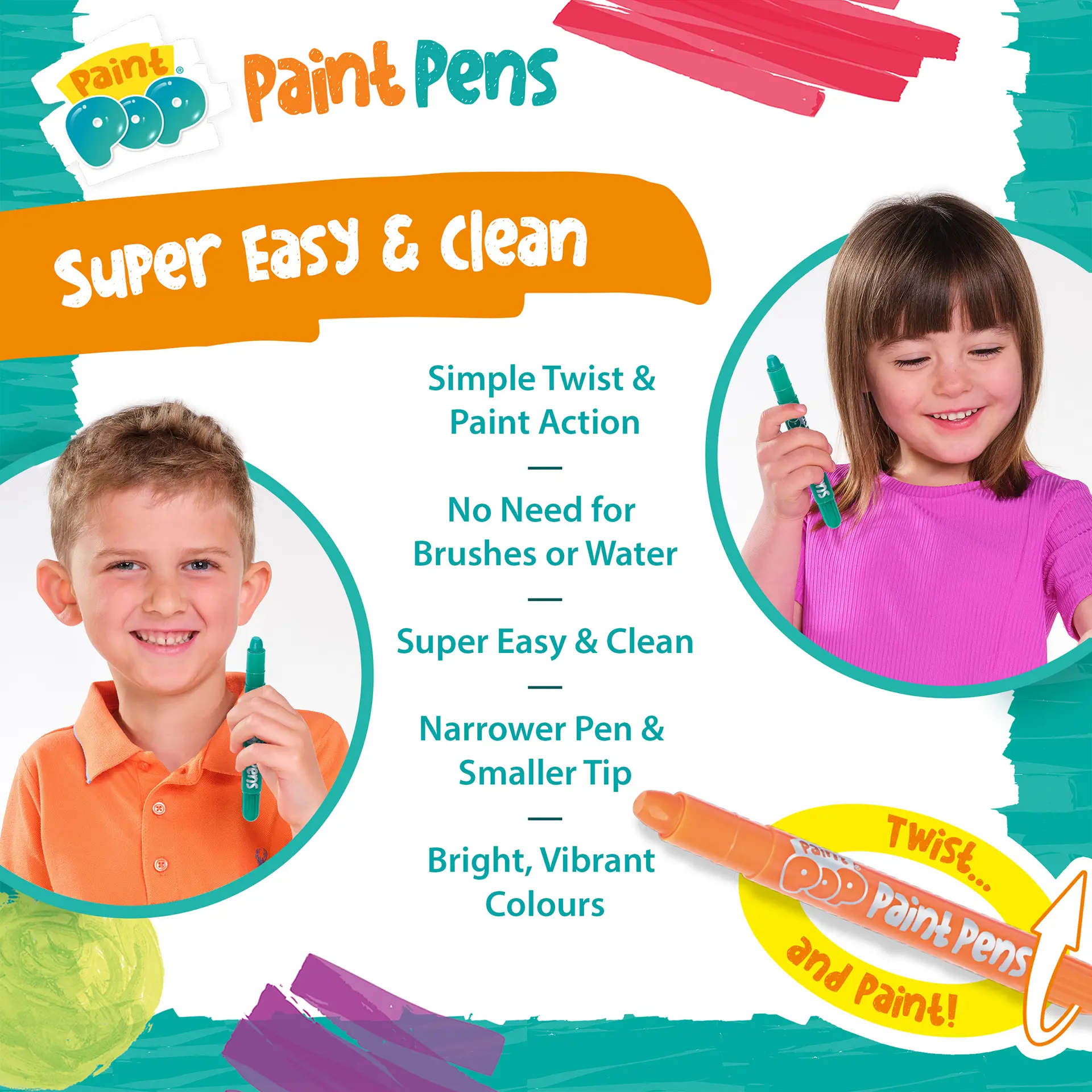 Fun, convenient and bursting with colour, the Paint Pop Paint Pens 12 Pack turns every creative moment into a happy, mess‑free experience for both children and parents.