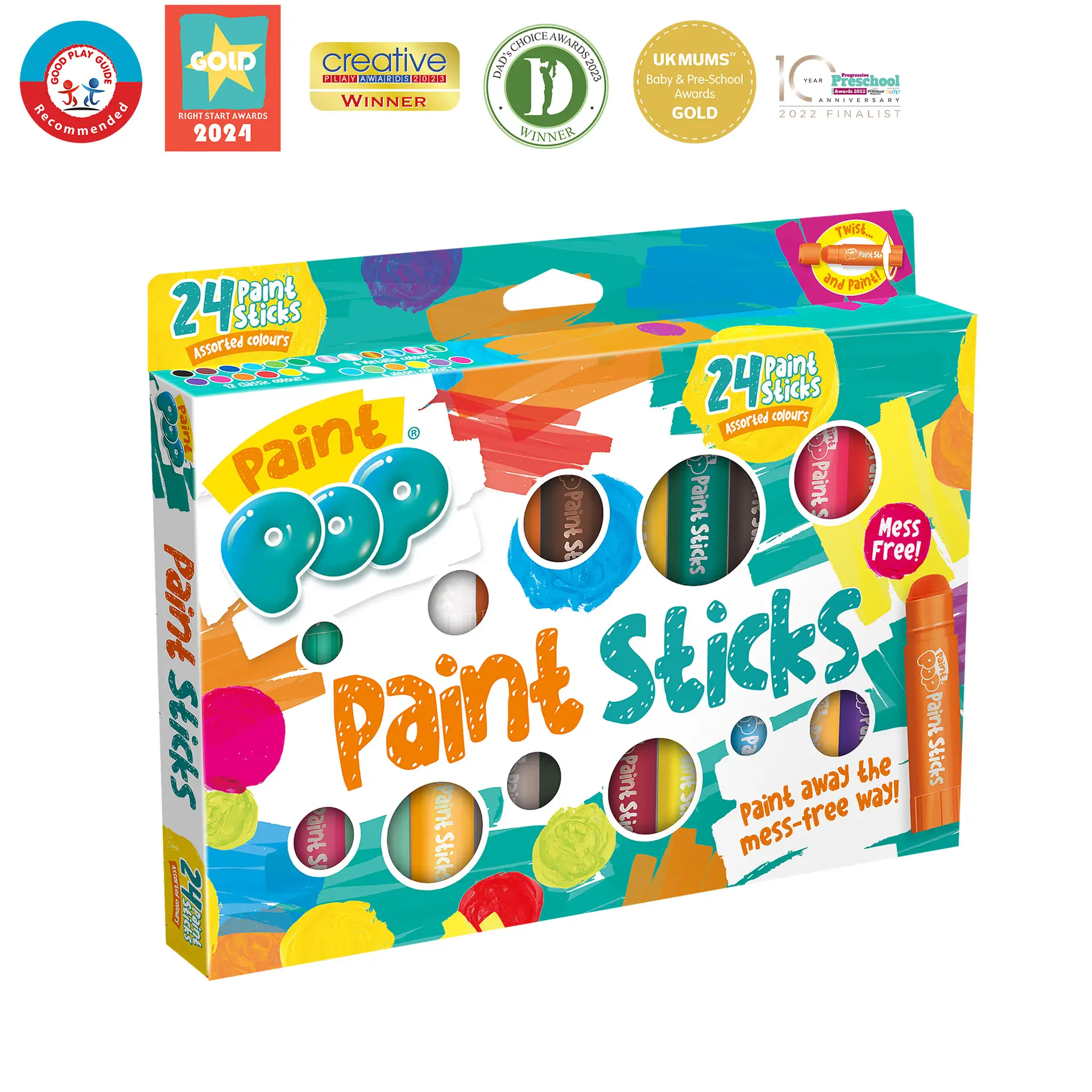 Encourage creativity the mess‑free way with the Paint Pop Paint Sticks 24 Pack, the perfect introduction to painting, doodling and colourful expression. These chunky twist‑up sticks are designed for small hands and make artistic play simple, fun and stress‑free – no brushes, water or messy clean‑up required.