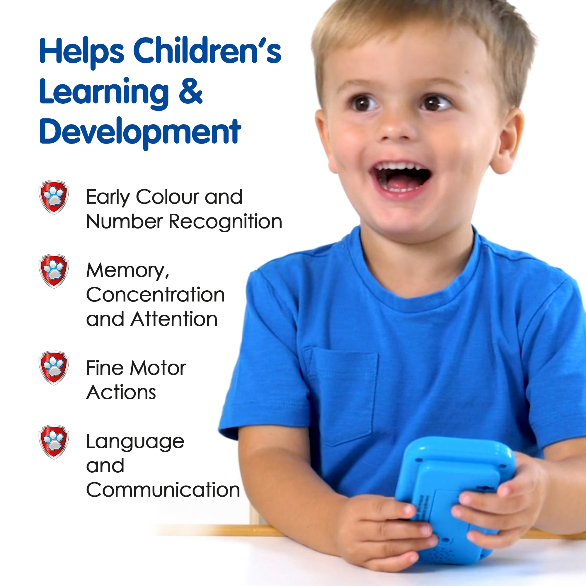Created to support early development, the phone offers hours of interactive fun while helping build listening, memory, concentration, attention, language and fine motor skills. Familiar voices from the PAW Patrol team guide each activity, making the experience exciting and reassuring for young fans.