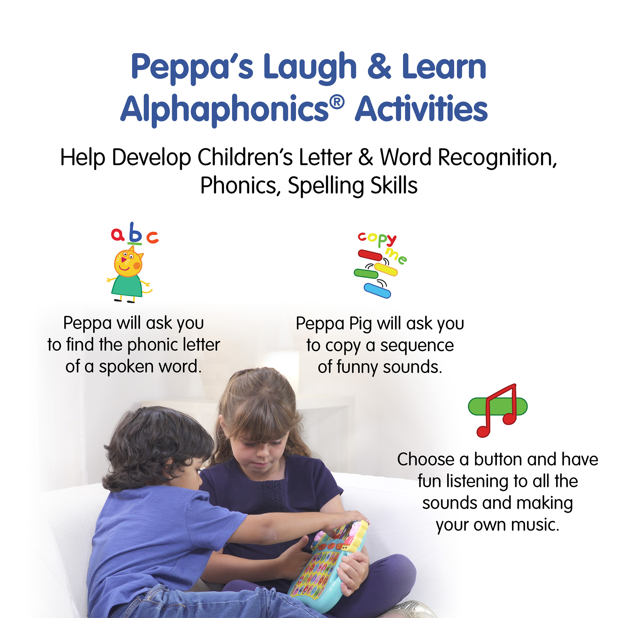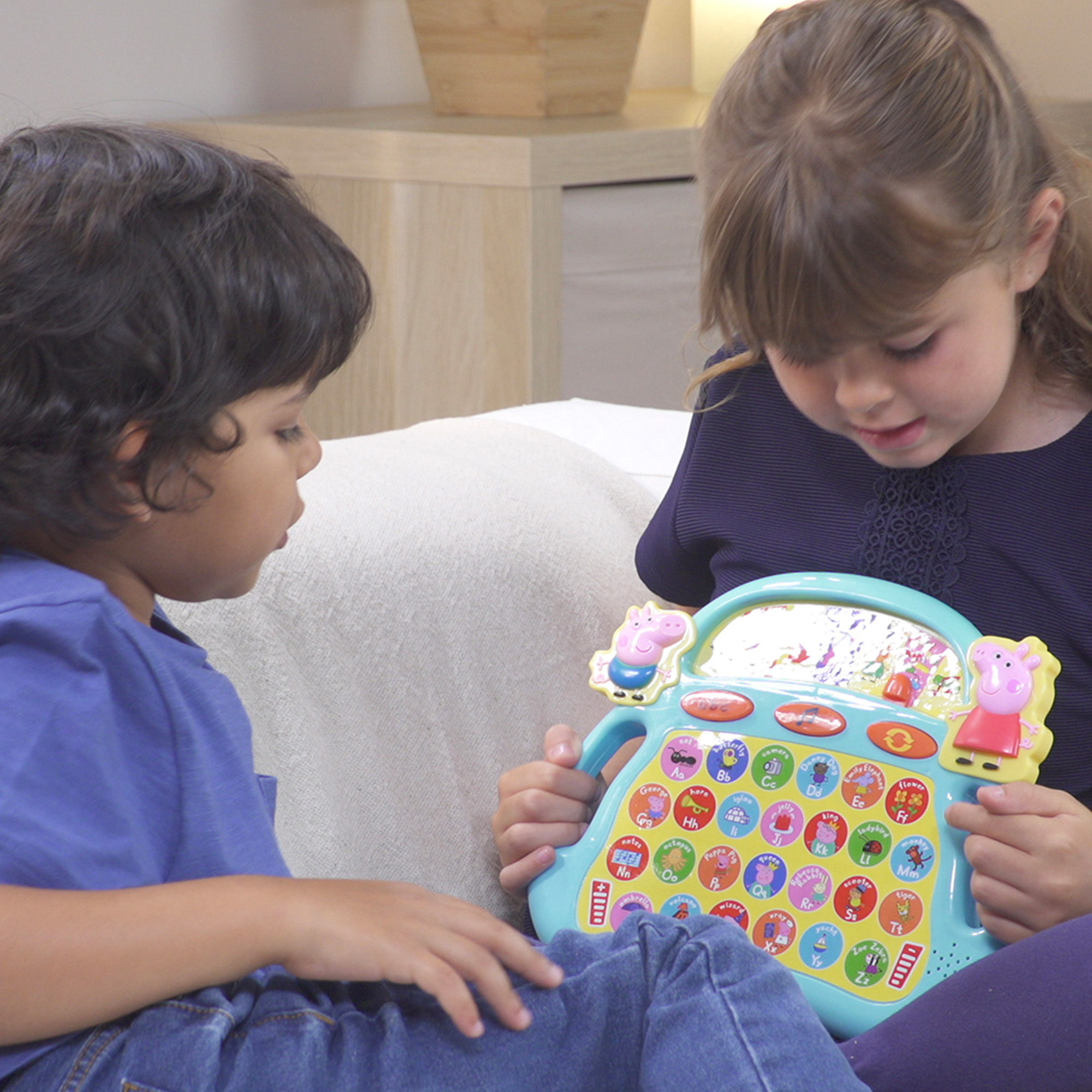 The Peppa Pig Play & Learn Alphaphonics Interactive Toy offers a fun and engaging way to explore letters, sounds and early phonics. Designed for ages 3+, this colourful A–Z learning console uses music, quizzes and interactive games to make early literacy feel natural and enjoyable.
