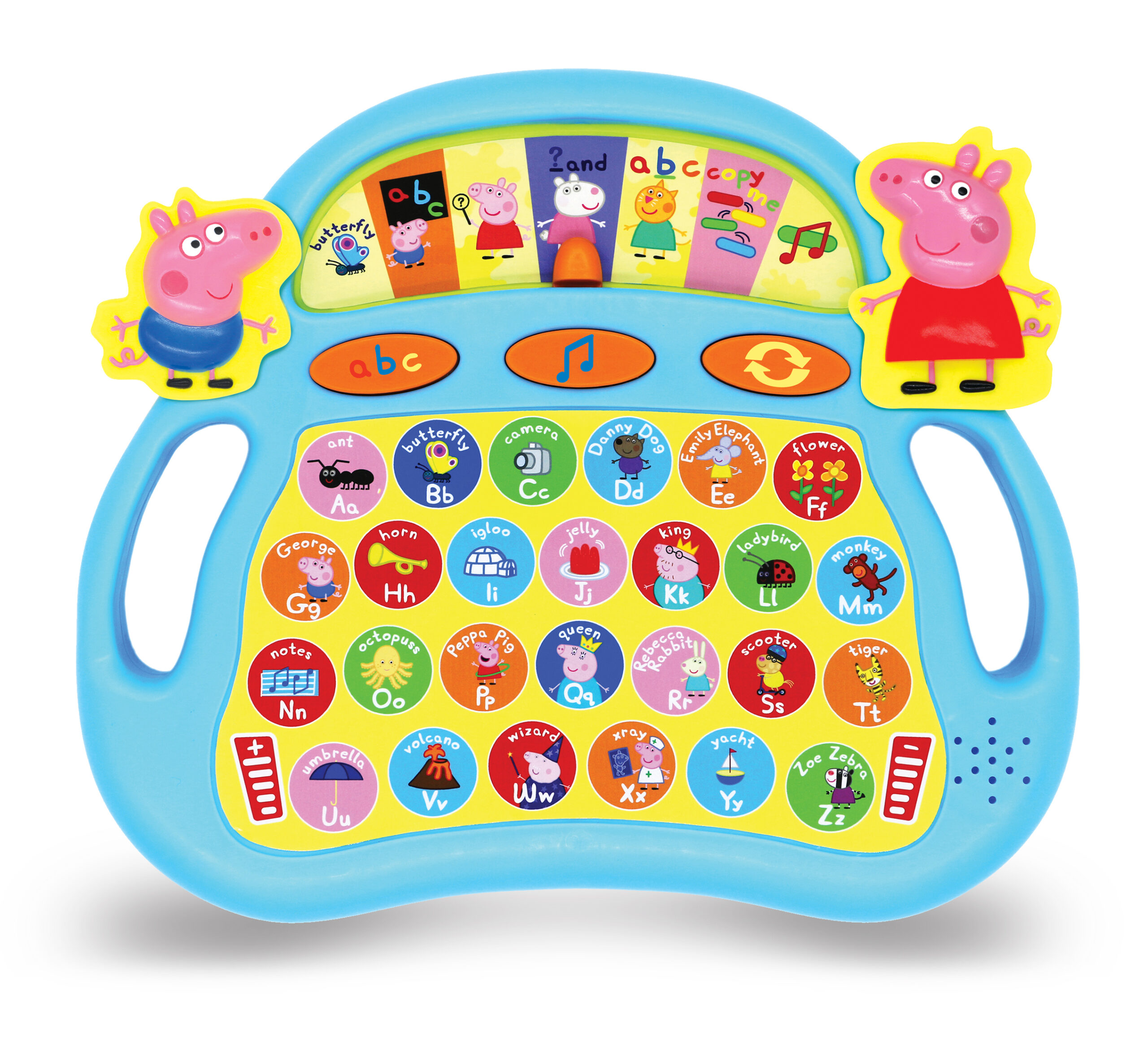 Bright artwork featuring Peppa, George and familiar objects adds strong visual appeal, while easy‑press buttons, a clear built‑in speaker and integrated carry handles make the console practical and comfortable to use. The sturdy design is ideal for everyday play at home or on the go.
