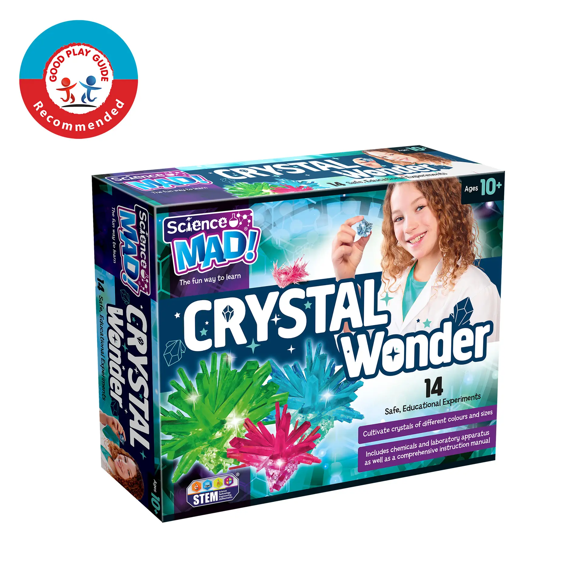 Discover the fascinating science behind crystal formation with the Science Mad Crystal Wonder, an exciting hands‑on laboratory kit designed for young scientists aged 10 and up (with adult supervision). This comprehensive set introduces the chemistry of crystals through 14 safe, educational growing projects, each explained in a detailed, fully illustrated manual.
