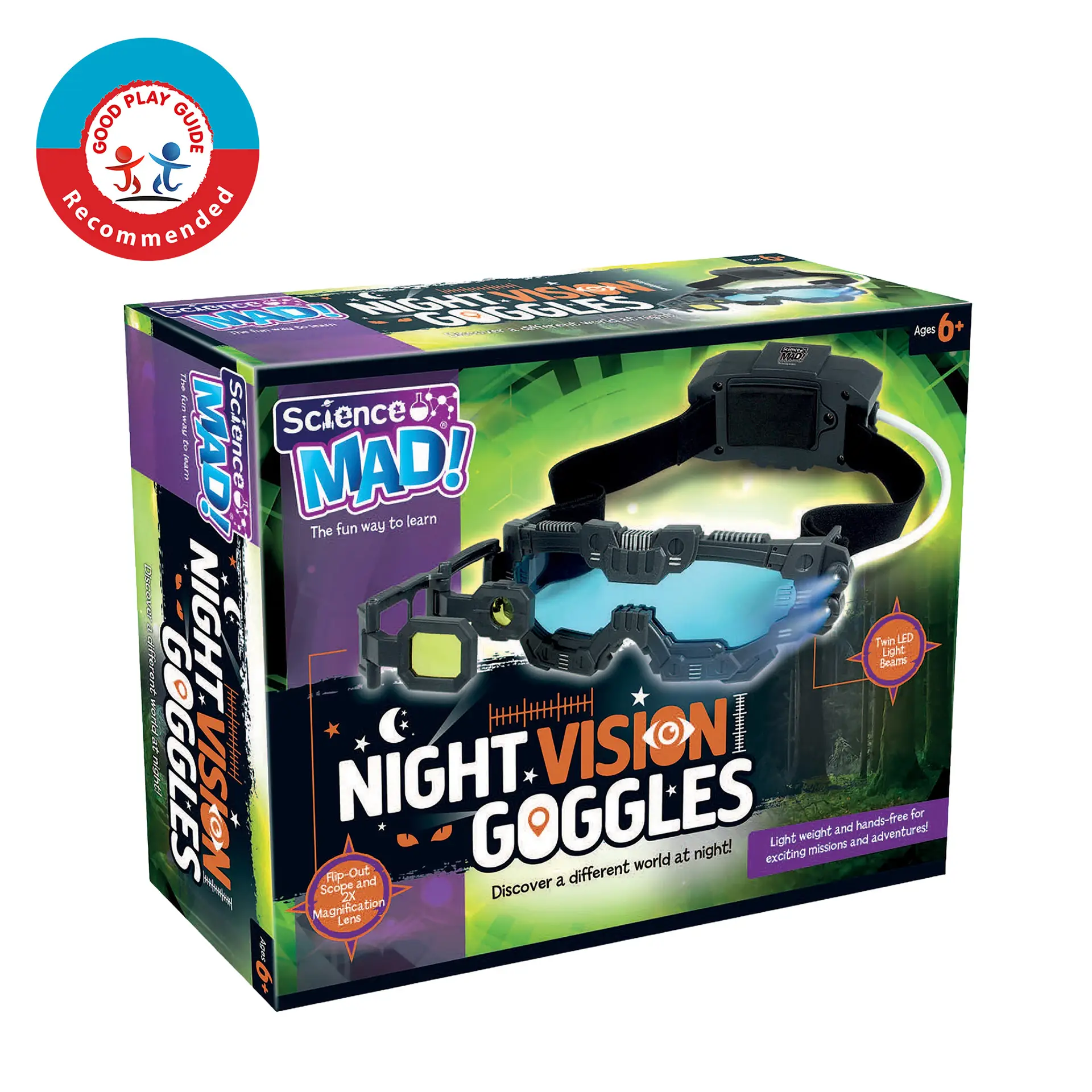 Designed with STEM learning in mind, the Science Mad Night Vision Goggles encourage observation, problem‑solving and exploration. Whether used for backyard adventures, nocturnal bug hunts or imaginative spy play, they offer a safe and exciting way to explore the world after dark.