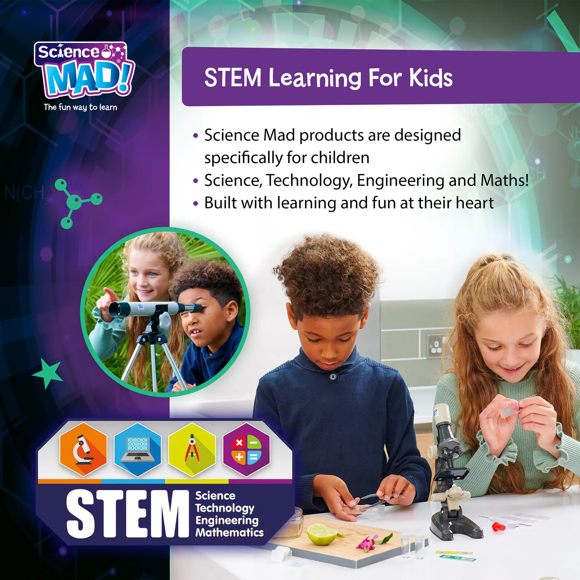 Discover the world in two exciting ways with the Science Mad Telescope and Microscope Combo Set, a brilliant 2‑in‑1 science kit designed for young explorers aged 6 and up (with adult supervision). This versatile set encourages hands‑on discovery, STEM learning and early scientific curiosity by combining both astronomical and microscopic investigation.