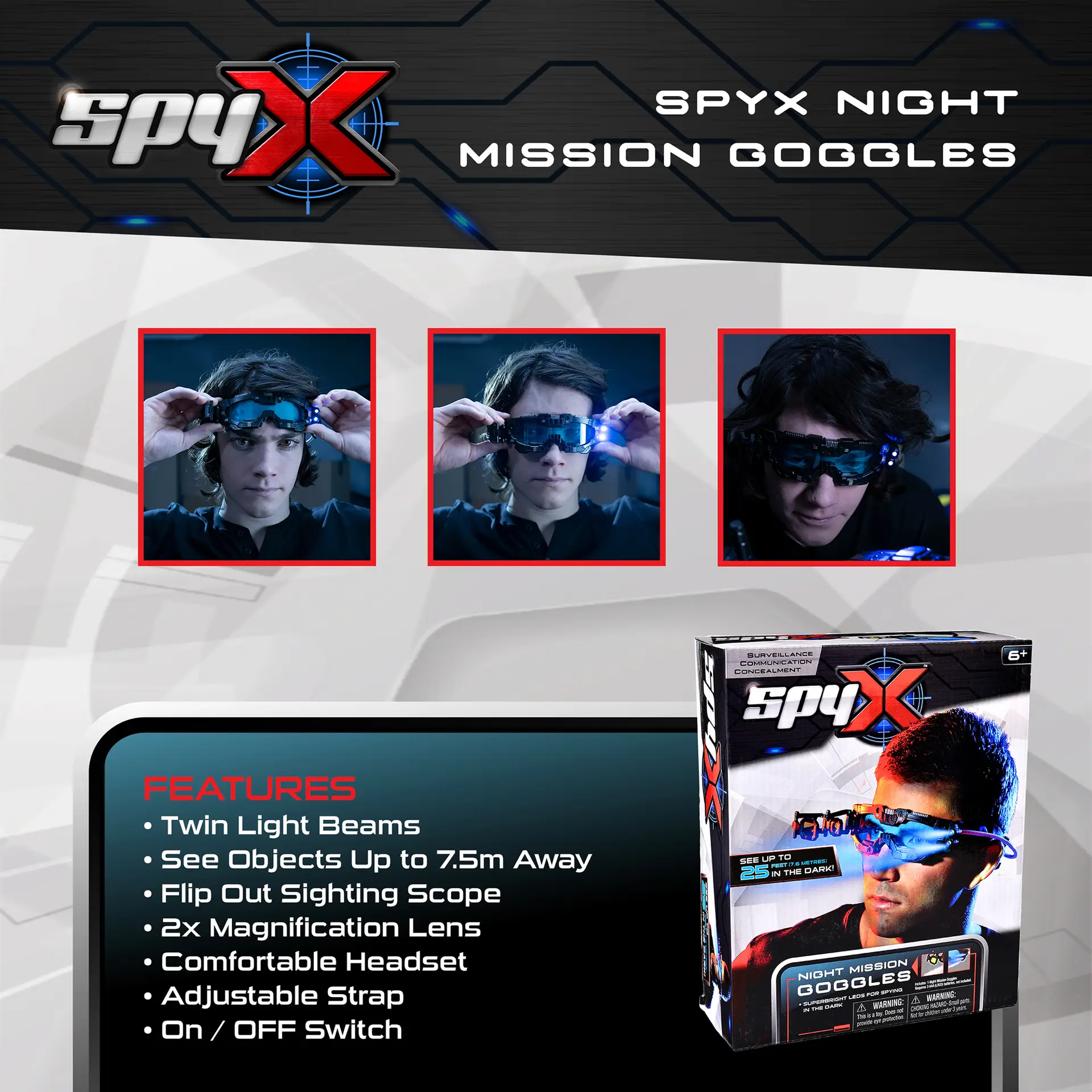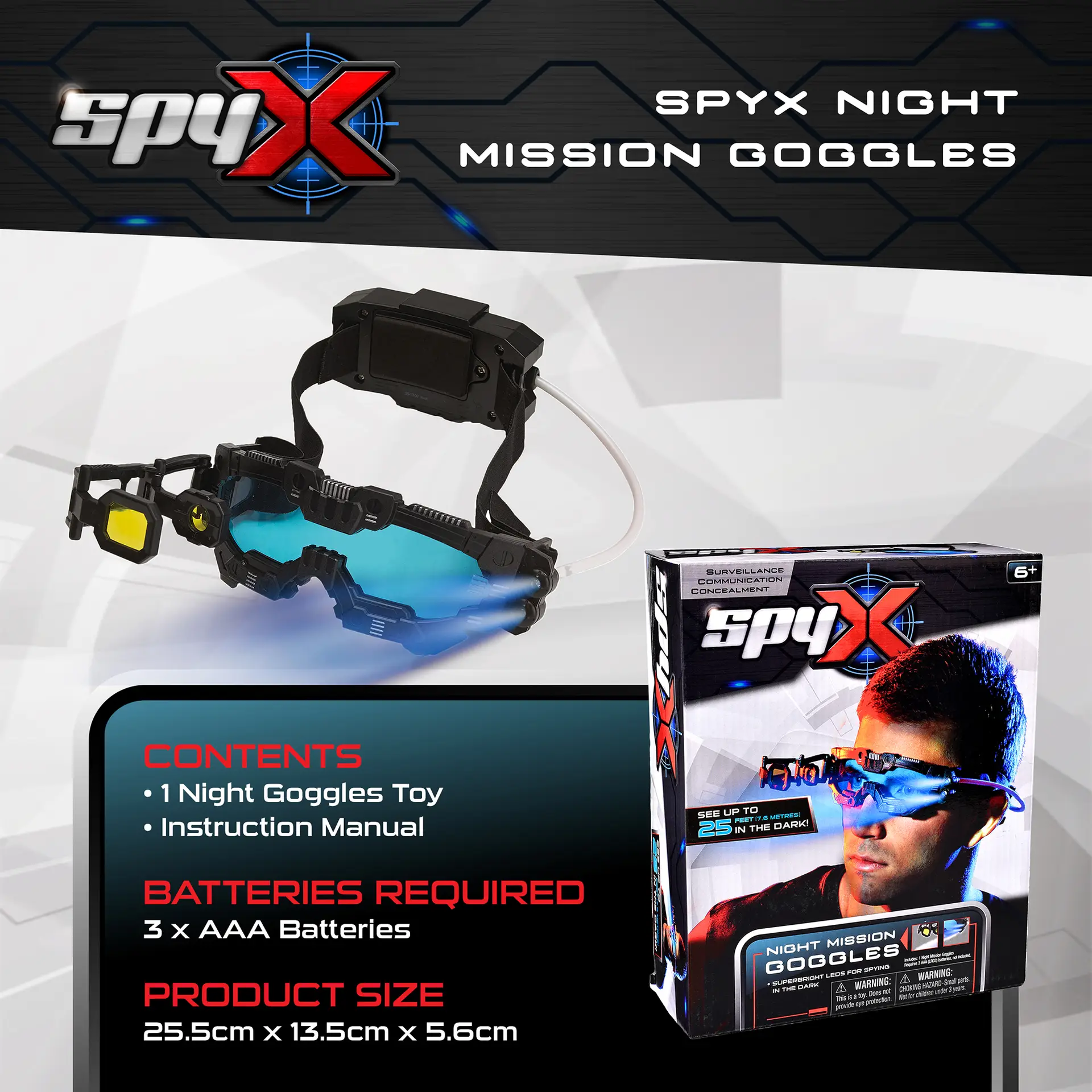 Designed to inspire imaginative role‑play and creative problem‑solving, the SpyX Night Mission Goggles are an exciting addition to any junior agent’s toolkit. The SpyX range includes many more gadgets and gizmos – collect them all for the ultimate secret agent experience.