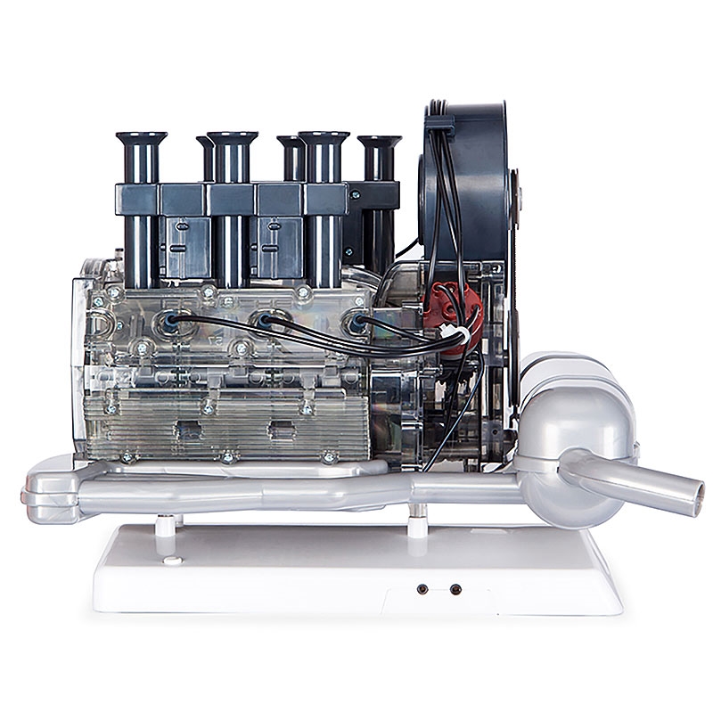 The finished model plays ignition and engine running sounds and illuminating spark plugs can be seen inside the engine.