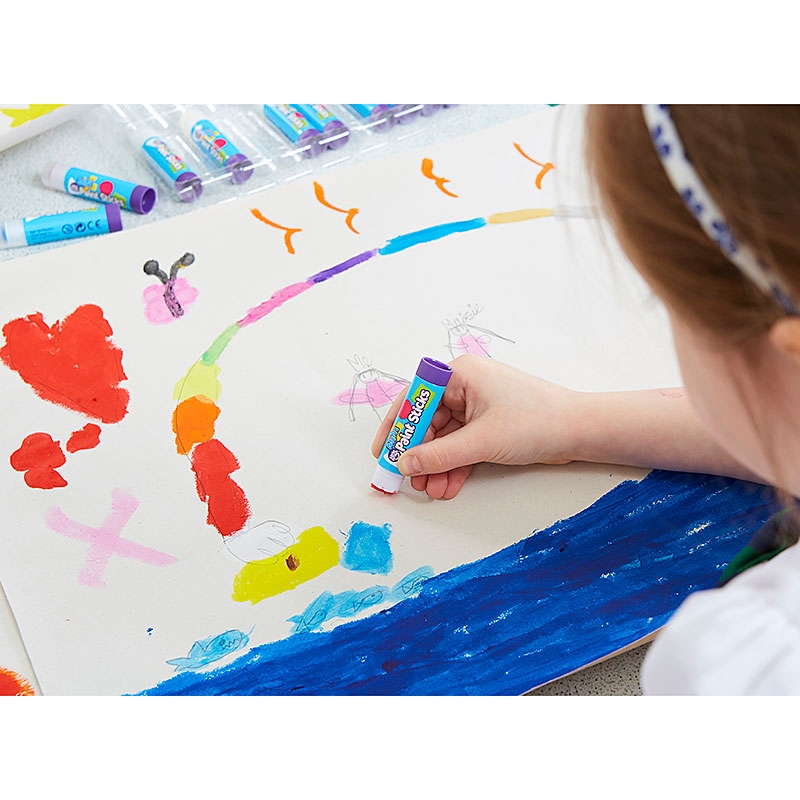 Paint Sticks Minis are smaller, convenient versions of full size ones. The water soluble, child friendly solid paint, twists up and down just like a glue stick, which dries in less than 60 seconds. Paint Sticks are extremely versatile and can be used on a range of multiple surfaces: Paper, card, canvas, wood and glass! Little Brian Paint Sticks are compact, clean, portable, quick drying, and have great coverage - a little goes a long way.