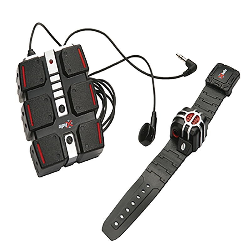 Use the Secret Agent Walkie Talkie to talk to your fellow agents, just like real secret service agents. Beautifully designed for ultimate stealth mode. Talk into the mic on your adjustable wrist strap and the receiver with belt clip will transmit the messages to your fellow agents ear buds. Voice activated for comfortable hands free spying . Features 2 x wrist walkie talkies, 16 channels, channel scan, LCD display.